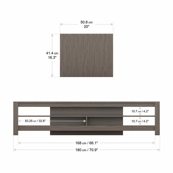 | Product Dimensions | Unit Size: H 41.4 cm x W 180cm x D 50.8cm TV Size: 12-85" |
