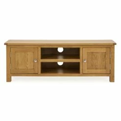 This wide Bromley TV unit comes complete with a fixed shelf, two ample sized cupboards and cable access, perfect for storing away household items and keeping cables neat and tidy.