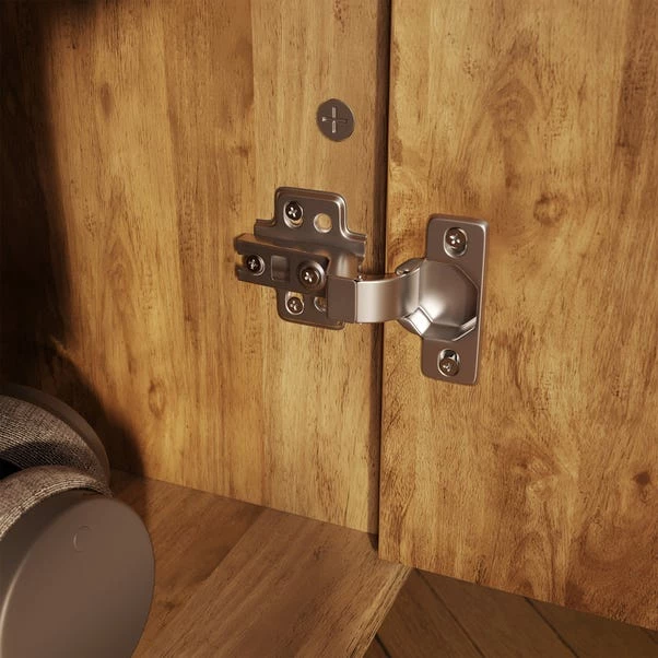 Style, storage, and sophistication – that’s what you’ll get with this gorgeous mango wood effect sideboard. With two doors hiding internal shelves, and 3 spacious drawers, it has everything you need to organize your living space. Make a statement and show off your chic style with this stunning sideboard.