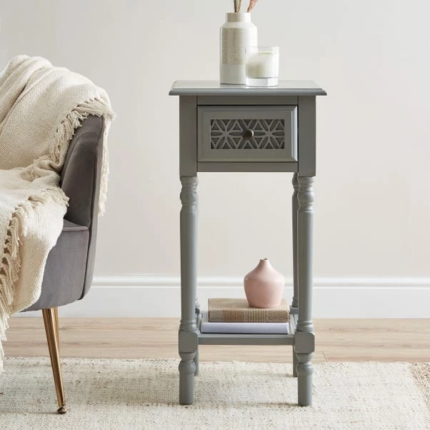 Requiring minimal assembly, the elegant Carys Tall Side Table features a single drawer and an open shelf and would make a great addition to your living or bedroom space.
