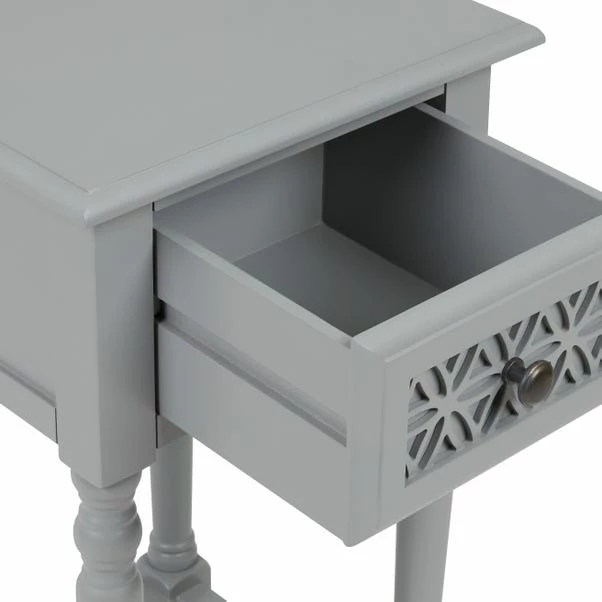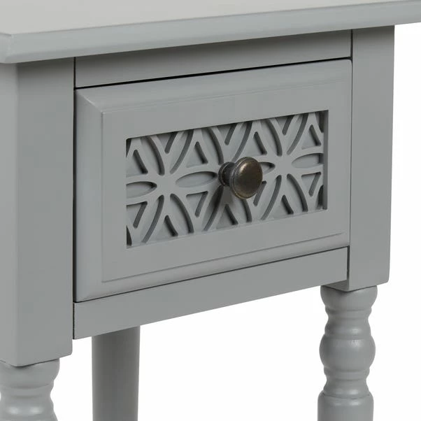 Characterised by the stunning carved design on the drawer fronts, the Carys range is perfect for adding a classy touch to your home. This beautiful collection also boasts a clean, grey painted finish, complete with distressed brass look handles.
