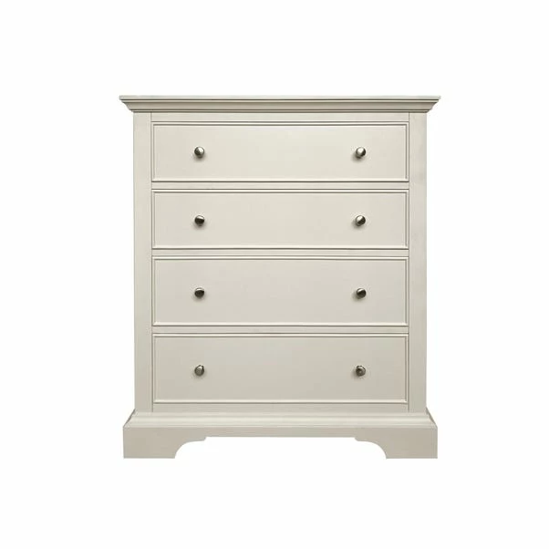 Designed to maximise storage space, this fully assembled chest of drawer features four smooth running wide drawers complete with pull-out safety stop.