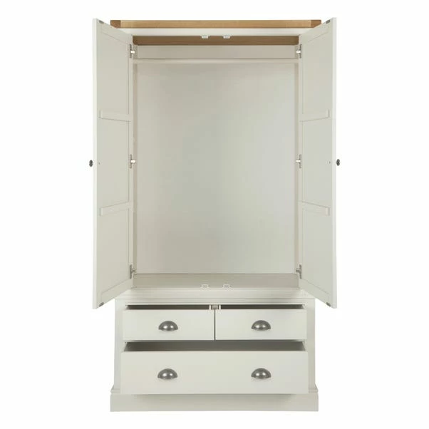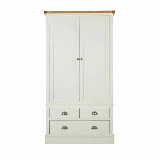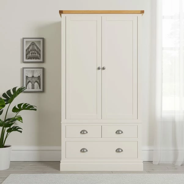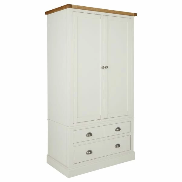 Offering ample storage space, this self-assembly wardrobe features three spacious drawers and a double door cupboard, equipped with a hanging rail.
