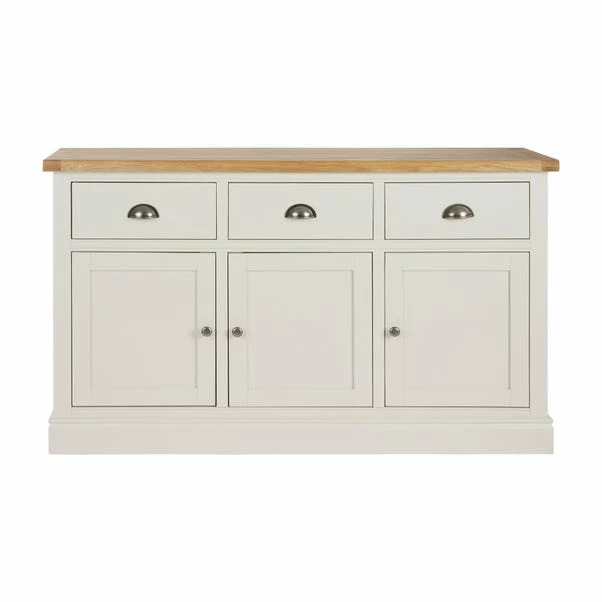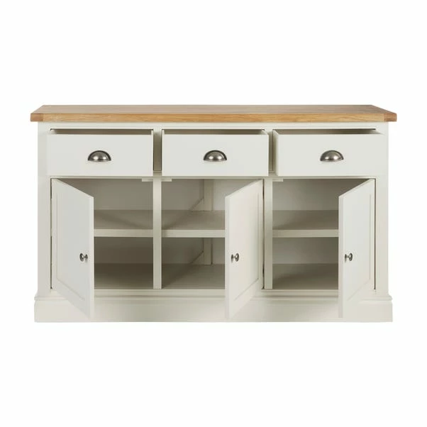 Designed to maximise storage space, this fully assembled sideboard features three spacious drawers and a large three door cupboard, complete with a long-fixed shelf.