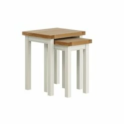 Featuring clean lines for a classic aesthetic, this fully assembled nest of tables offers an appealingly smooth finish and comes complete with two assorted size tables that fit together neatly for convenience.