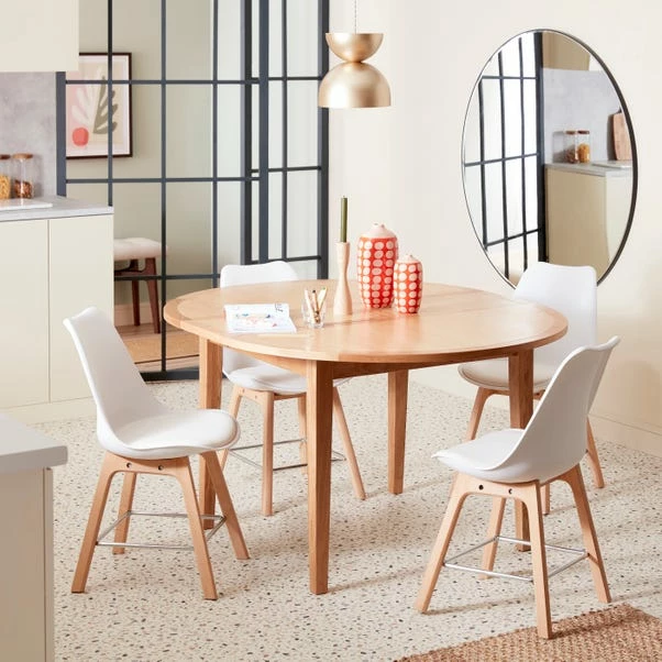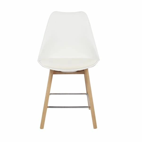 Boasting a stunning modern design, this Erik dining chair will add a modern touch to your dining table. Featuring a bright white colourway, this stool is timeless and elegant. Beautifully designed with a Polypropylene chair and a PU padded seat for extra comfort, paired with stylish and study beech wood legs and a metal foot rest.