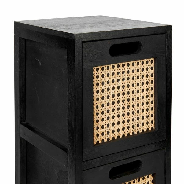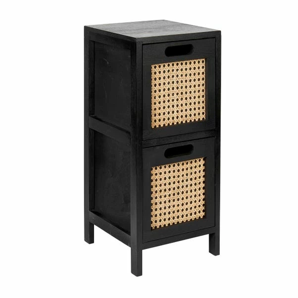 Featuring a black colour frame, this 2 drawer unit features a beautiful french cane element. Perfect for compact living, this unit provides easy storage to help keep your bathroom tidy.