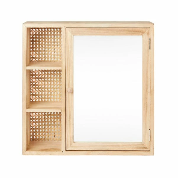 Perfect for compact living areas, our beautiful French Cane Mirror Cabinet is a perfect easy storage solution for your bathroom. Made in a natural colourway, this cabinet has a french cane design and features 3 open shelves and a mirror with storage behind.