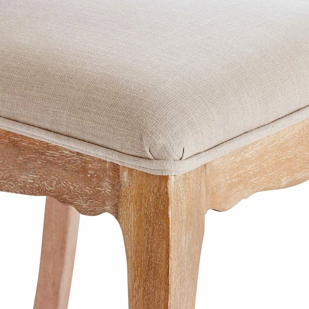 Beautifully hand carved from solid pieces of mango wood, the Giselle Set of 2 Dining Chairs features a stylish French design. Upholstered with a natural cotton slub fabric, cushioned with foam and fibre for luxurious comfort, complete with elegantly curved legs. The Giselle chairs would make a beautiful addition to your dining space.