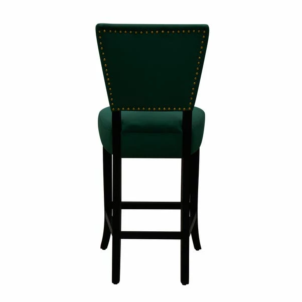 Serve up drinks and dinner to be enjoyed in style and comfort in the Hallie Bar Stool. The soft touch eco-velvet upholstery, studded back detailing, and wooden legs brings an elegant look to your space that will have you and your guests wanting more.