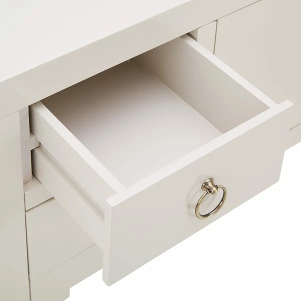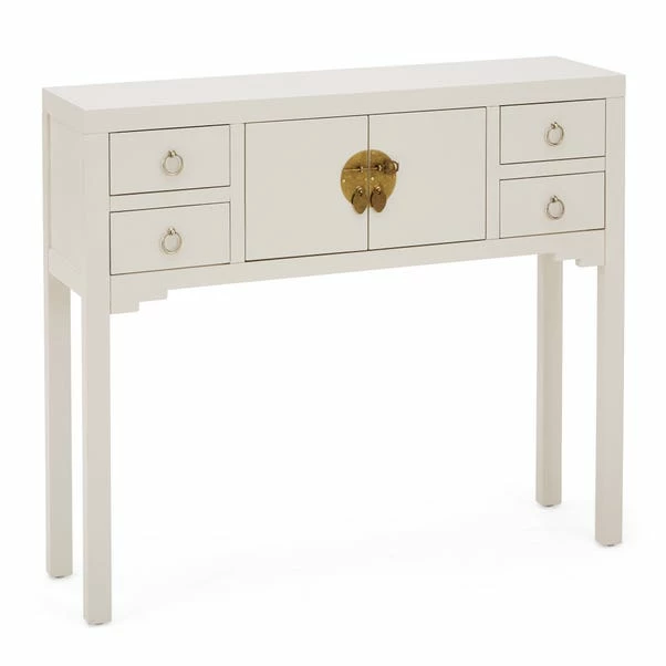 Featuring a beautiful Chinese and Japanese inspired design, the Hanna range offer a versatile storage solution that will add a unique touch to your home. Designed in a beautiful oyster finish colourway and a contrasting distressed gold detailing, this exquisite range features authentic oriental handles with a loose pin lock mechanism, perfect to glam any room.