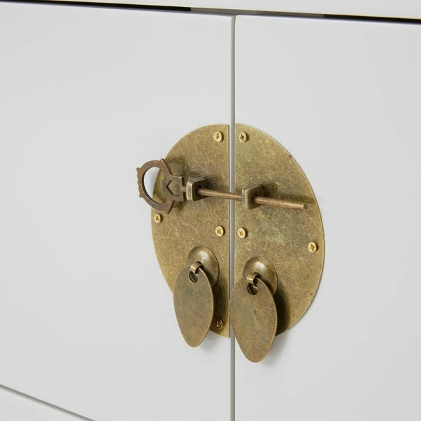 Featuring a beautiful Chinese and Japanese inspired design, the Hanna range offer a versatile storage solution that will add a unique touch to your home. Designed in a beautiful oyster finish colourway and a contrasting distressed gold detailing, this exquisite range features authentic oriental handles with a loose pin lock mechanism, perfect to glam any room.