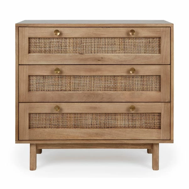 Bringing a modern flair to a retro style, the Indi range is perfect for any contemporary or global styled home. Characterised by the stunning natural rattan fronts and brass knobs, this range boasts a 100% mango wood construction and minimal assembly.