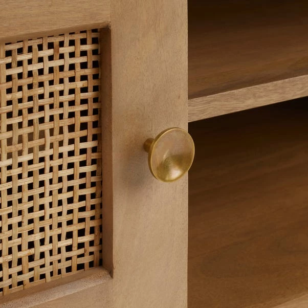 Bringing a modern flair to a retro style, the Indi range is perfect for any contemporary or global styled home. Characterised by the stunning natural rattan fronts and brass knobs, this range boasts a 100% mango wood construction and minimal assembly.