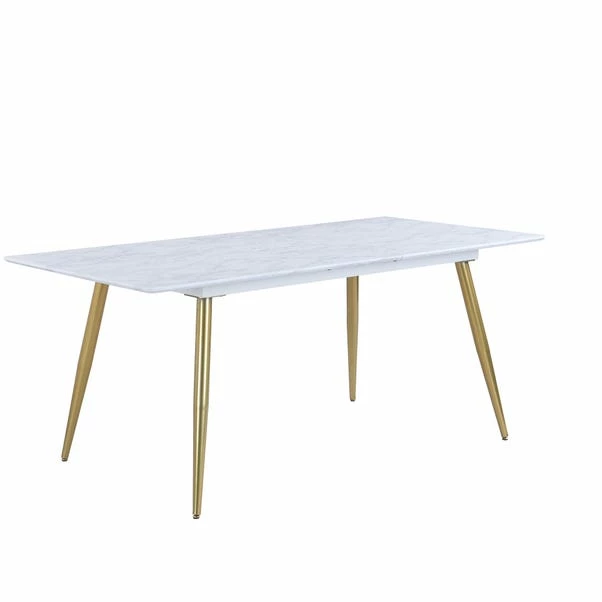 Sleek and sophisticated, the Kendall Marble Effect Extending Dining Table seats 6 – 8 people and features a truly modern design, combining a striking faux marble with splayed gold-finish metal legs. The table’s butterfly extension is easy to access and requires minimum effort to unfold, making this the ideal table for dinner parties or accommodating extra guests.