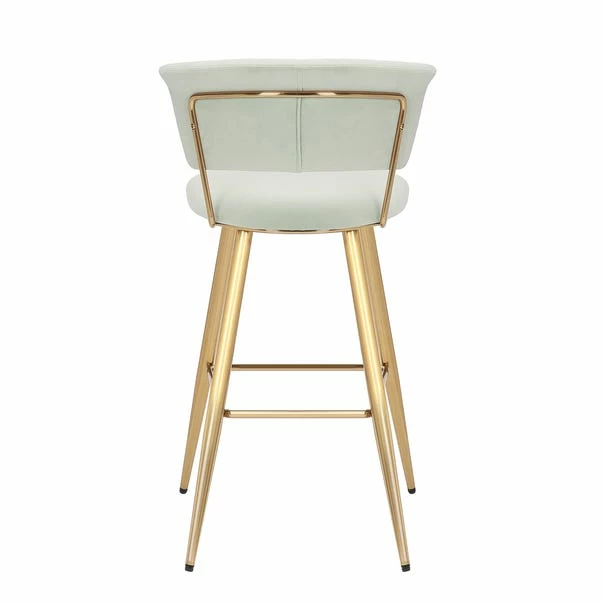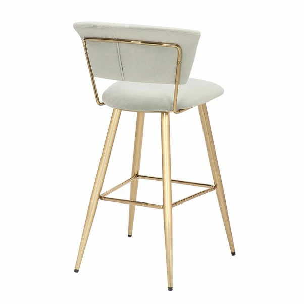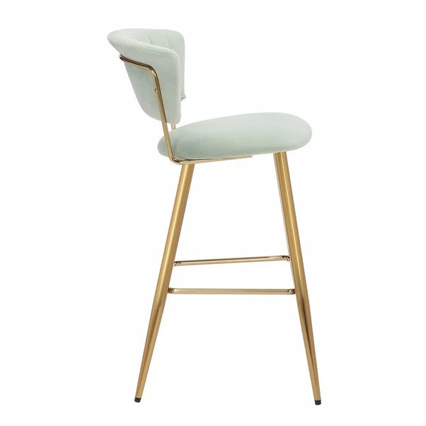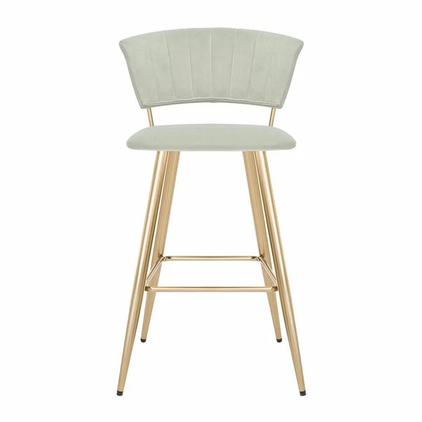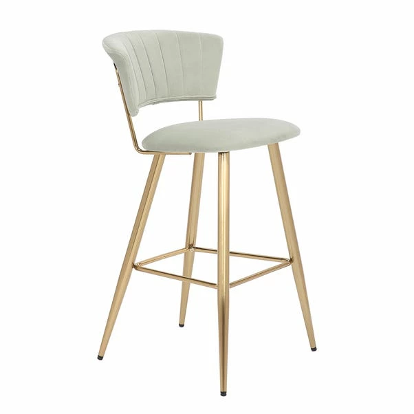 Finished in a plush velvet in a choice of stunning colours to match our Kendall chair, this bar stool boasts a contemporary luxe design. This stylish bar stool is crafted with a pleated, curved shell back and gold-finished metal legs to add a modern touch to your kitchen area.
