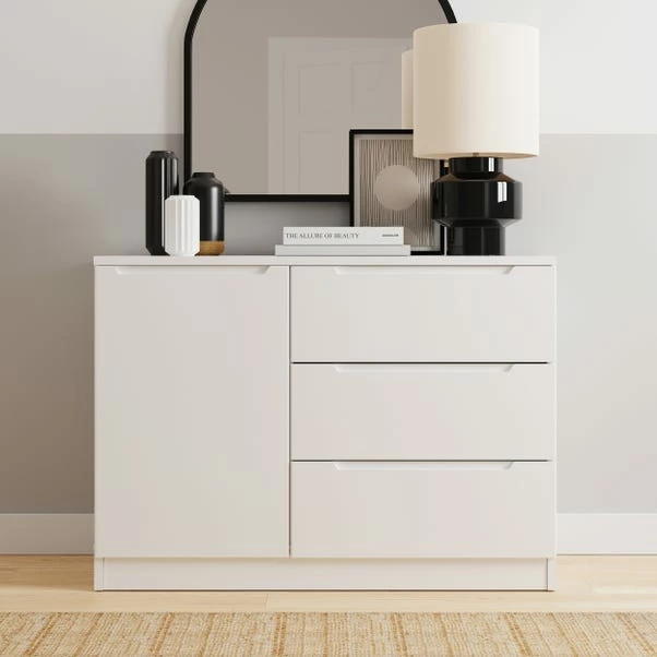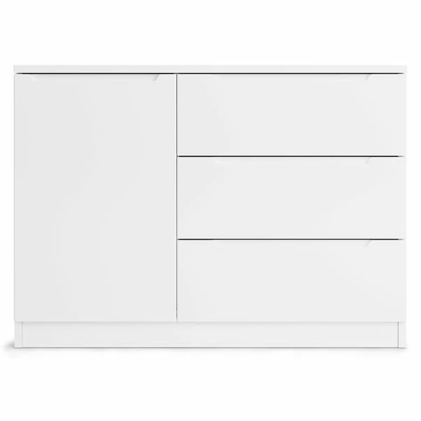 Keep your home clutter free with the Larson Small Sideboard. Compact enough to fit almost anywhere in your home, it still has plenty of storage and display space to offer thanks to the cabinet and 3 drawers. Finished in a timeless white finish to fit in with any existing decor and interior styles.