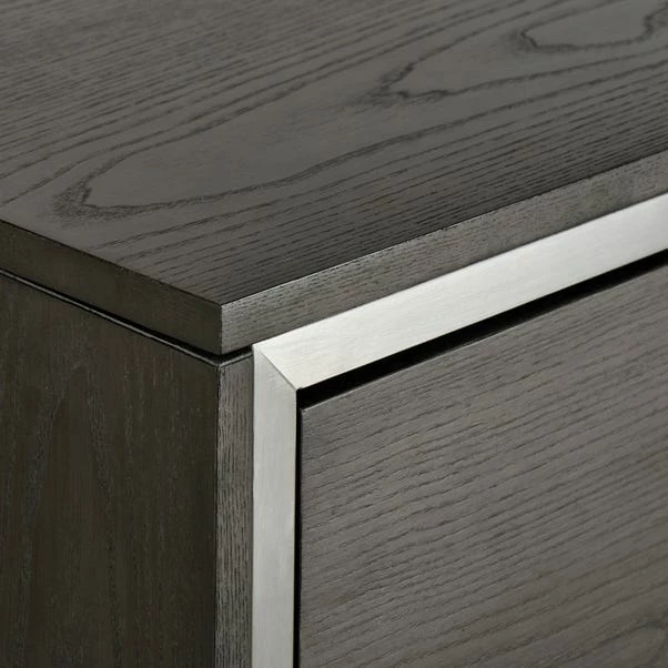 Offering a stunning contemporary hotel design, the Logan range boasts solid wood construction, paired with gorgeous grey-stained ash wood veneers and complemented perfectly by the brushed stainless steel frames. This fully assembled range also features cut-out handles adding to the sleek, modern look.