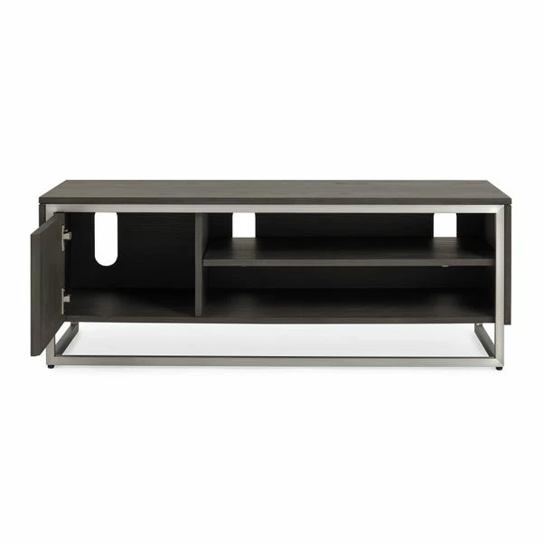 Perfect for bringing a touch of modern class to your living space, the Logan TV Stand offers a spacious cupboard and two wide open shelves, each complete with handy cable access at the back to help keep your living room free from cable clutter.