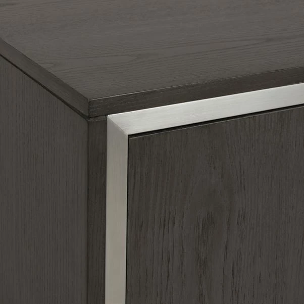 Offering a stunning contemporary hotel design, the Logan range boasts solid wood construction, paired with gorgeous grey-stained ash wood veneers and complemented perfectly by the brushed stainless steel frames. This fully assembled range also features cut-out handles adding to the sleek, modern look.