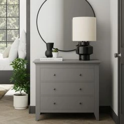 Fashioned in a grey colourway, this chest of drawers features three large drawers, with full extension runners and brushed grey metal handles.