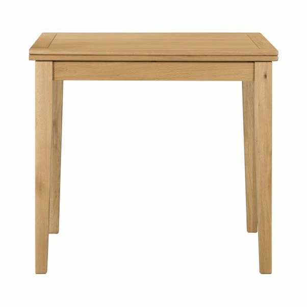 Perfect for family dinners or unexpected guests, the Maddox Flip Top Dining Table seats 4 with a drop leaf extension that extends out to an oval dining table seating 6-8. The Maddox Flip Top table is constructed of solid oak and oak veneers and has a clean, contemporary shape that’s timeless and stands the test of time. This classic look looks great in any home and pairs well with a variety of décor styles.