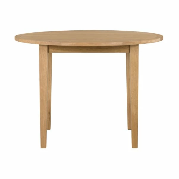 The Maddox Round Dining Table is designed with a classic look, featuring clean lines, tapered legs, and a solid oak wood and oak veneer construction with a stunning wood grain pattern. Seating up to 4 people, this dining table is perfect for smaller families or spaces due to its compact size. The Maddox dining table pairs perfectly with the coordinating items within the Maddox range.