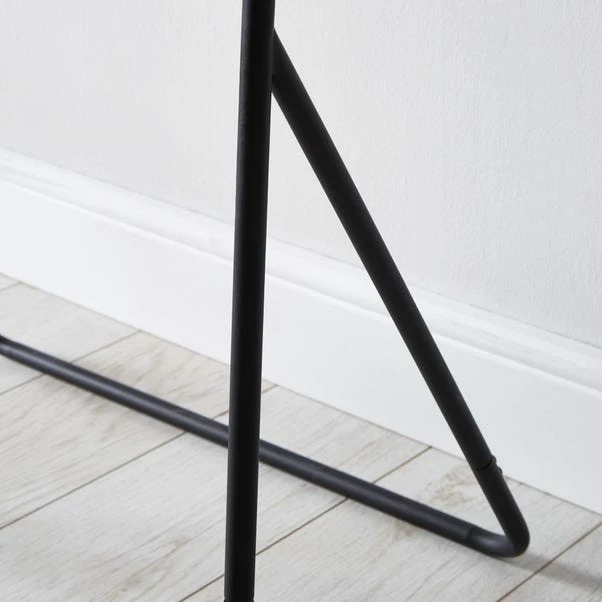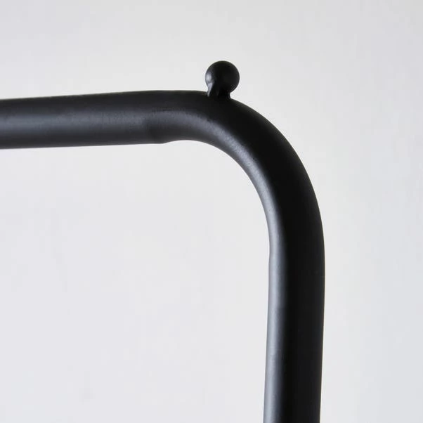 Crafted from metal, this black floor standing clothes rail is perfect for hanging your clothing for neat space saving storage. Completed with two secure legs for added stability, this clothes rail can easily be wiped clean when required.