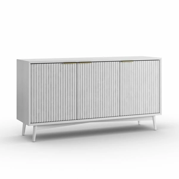 If you’re looking for a stylish and functional sideboard for your home, then look no further! The Neena Large Sideboard with a washed white painted finish is the perfect piece for all your storage needs. The spacious shelving and fluted front design offer plenty of storage space for dishes and other items, while the champagne metal handles and angled legs add a touch of class to the overall look. Not to mention, the light grey finish will give your room a timeless, yet modern look that you and your guests are sure to appreciate.