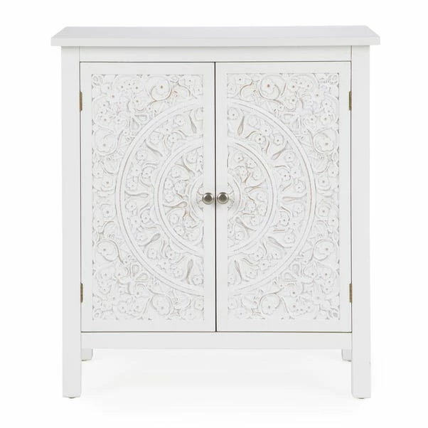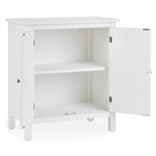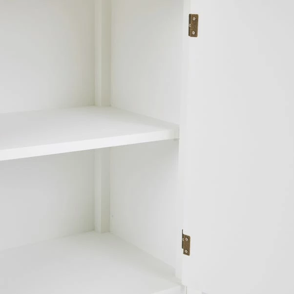 Finished in a white colourway, the Samira small sideboard features a spacious cupbpoard space with a fixed shelf, providing plenty of useful storage space.