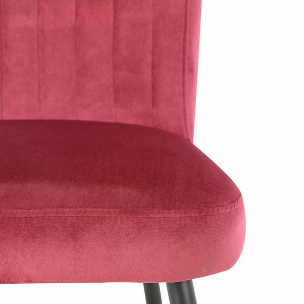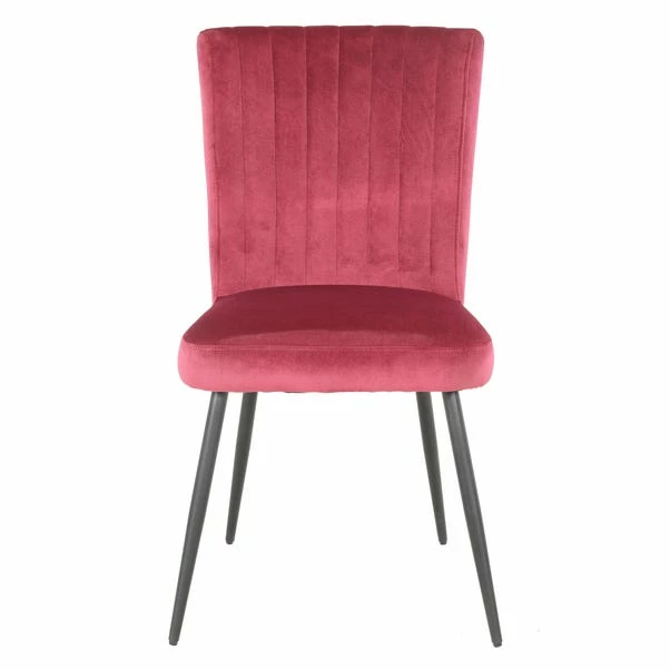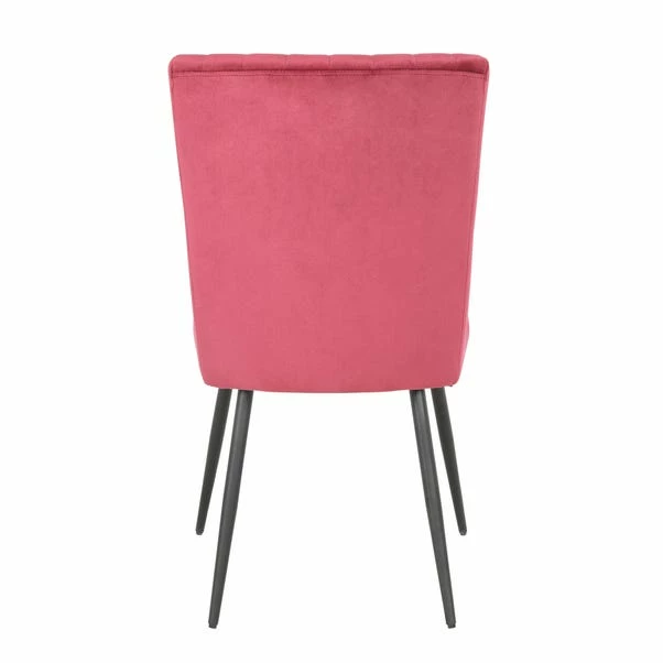Boasting an elegant design, the Taylor dining chair will bring a classy touch to any dining space. Finished in a choice of velvet fabric colours, this chair features stitched, cocktail style backs, complete with generously padded, foam filled seats and slender black powder coated metal legs.