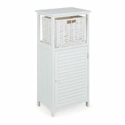 Perfect for adding a stylish storage unit to your bathroom, this painted white unit has two drawers and a wicker basket for ample storage. With a large top this unit is perfect for displaying candles, bathroom ornament, plants and more. This unit is also available in grey.