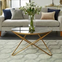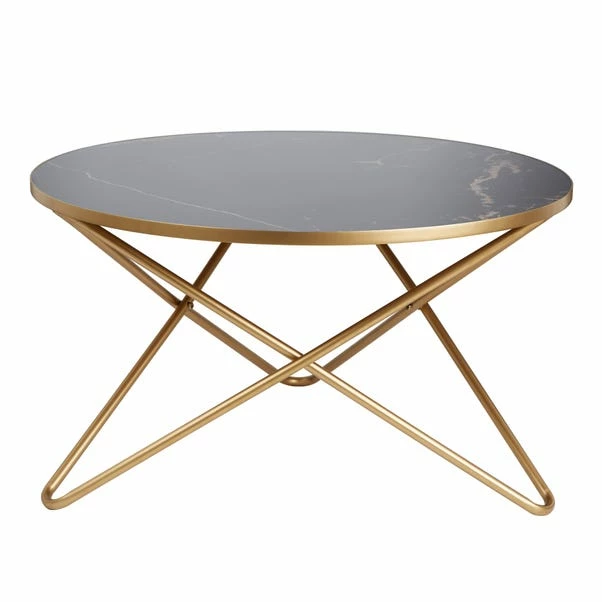 The Zoey Black Marble Effect Coffee Table is the perfect addition into any home and is sure to elevate the look of your living area. Boasting a gorgeous marble effect top and finished with gold finish hairpin legs, this coffee table has a modern and stylish look that is ideal within a contemporary home.