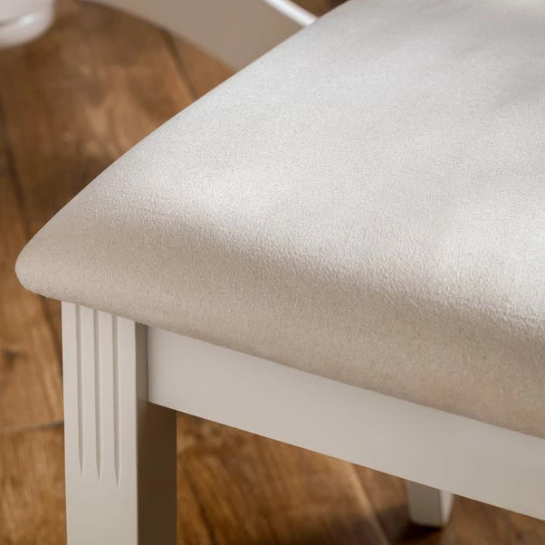 Crafted from solid rubberwood and a real oiled oak veneer 25mm top, this table is not only classic and modern but it is extremely durable. Perfect for any home, this table has an ivory lacquered finish and faux suede seat pads for added comfort and style. Other matching furniture is also available.