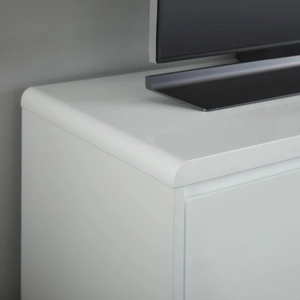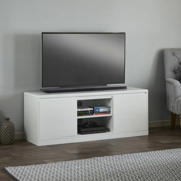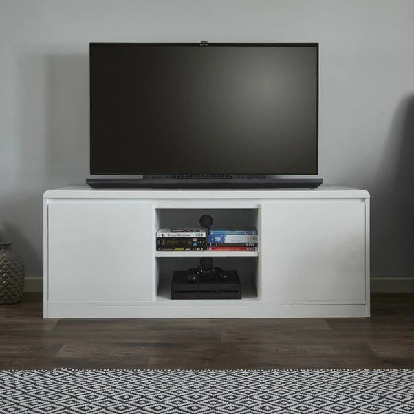 The Knox TV Stand is the perfect choice for smaller spaces or apartments due to its compact size. The Knox TV stand is designed with a minimalist, modern feel and offers a good amount of storage with a shelving unit and cupboards to store away consoles, games, and more.