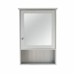 Attaching to the wall of your bathroom and preventing floor clutter, this wall cabinet features 3 useful shelves with a hinged door that is complete with a useful mirror. With a stylish grey finish, the cabinet is contemporary in design and will suit a variety of bathroom decor styles.