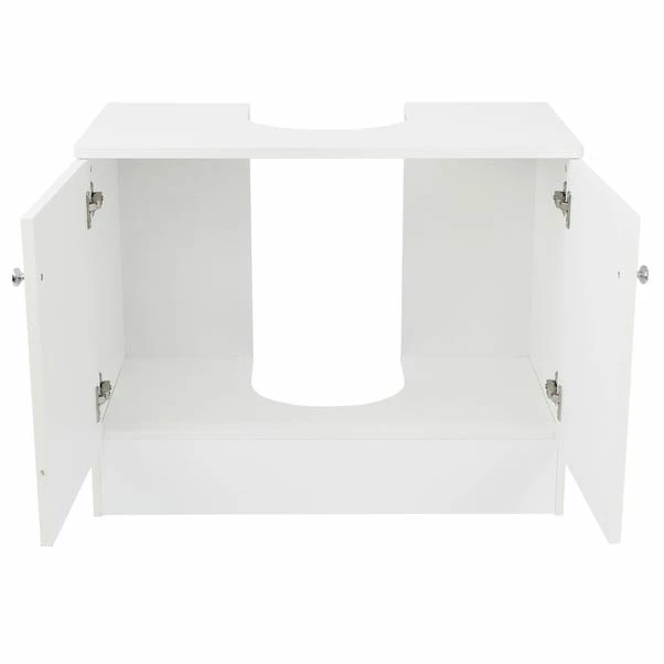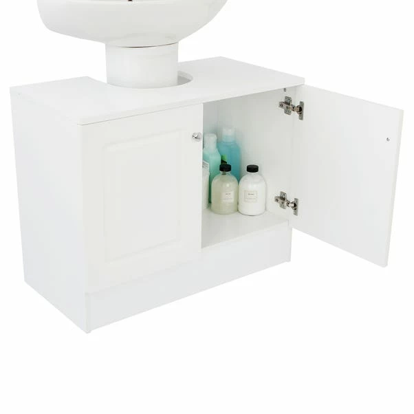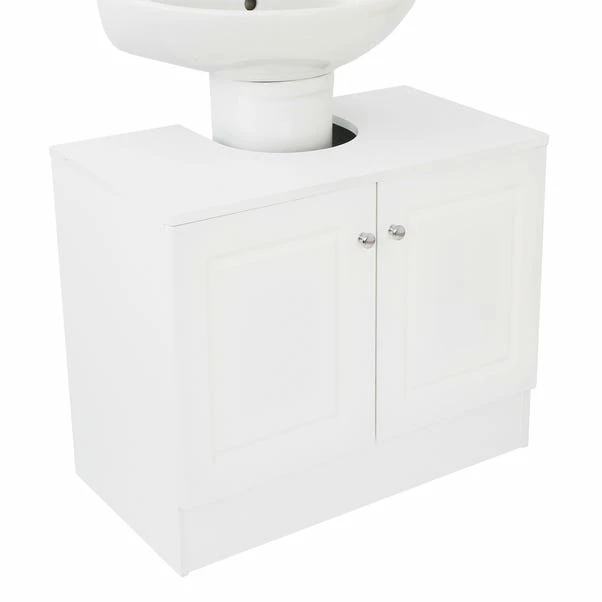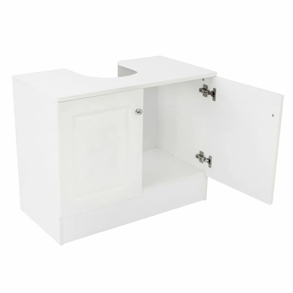 Simply designed with curved edges and a white finish, the Verona white under basin unit features soft closing hinged doors which are decorated with traditional detailing.