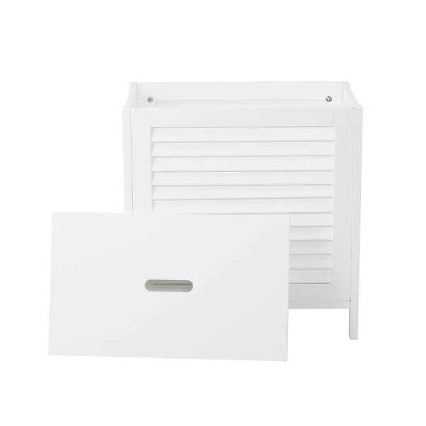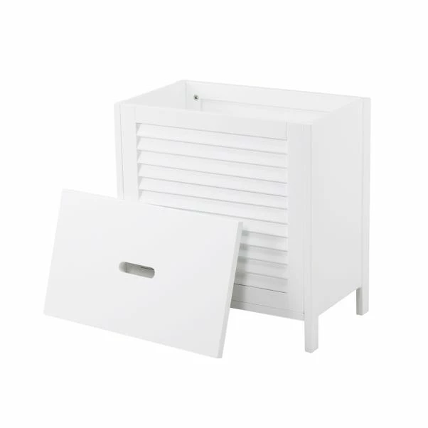 Featuring a removable top and push to close door with louvre detailing, the Tuscany laundry hamper has leg details and comes in a flat pack which is easy to assemble. Boasting a painted design, this hamper is stylish and timeless.