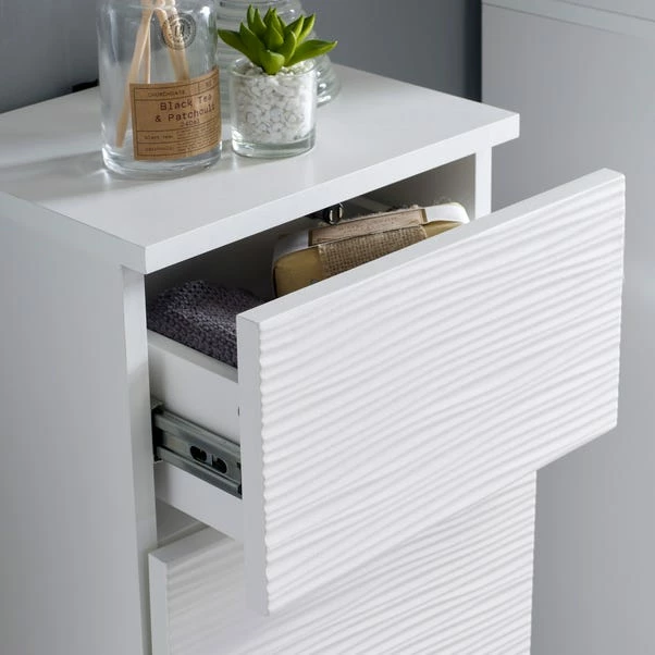 | Product Dimensions | Assembled Dimensions: H 86cm x W 30cm x D 24cmDrawer Dimensions: W 21.7cm x D 18.7cm x H 8cmShelves Dimensions: W 26.8cm x D 20.5cmPackaging Dimensions: H 15.5cm x W 36cm x D 88cm |
