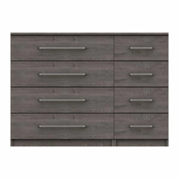 The Parker 8 Drawer Wide Chest offers a contemporary design that would suit a wide range of décor styles. This stunning chest of drawers is supplied fully assembled and features linen look drawer insides and soft radius metal effect handles. Complete with 8 large drawers with 8mm heavy duty bases and easy glide metal runners, this chest would make a practical addition to any home.