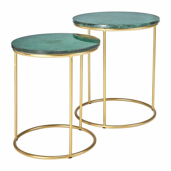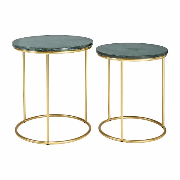 The tabletop is made of marble which gives it a luxurious look, and the gold iron frame adds a touch of glamour. There are 3 colourways that these nests of tables come in, so find the best one to suit your home interior! The heavy and sturdy construction ensures the tables are durable and able to withstand daily use. Additionally, the tables are versatile pieces of furniture as they can be easily stored away when not in use, saving space in small living areas.