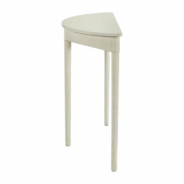 Open up your hallway with this classic console table with a half moon shape. You will have a small amount of extra surface space, so use it for your essentials or just a touch of decor, the choice is yours! Made for the long run, this console table will last you for a long time.