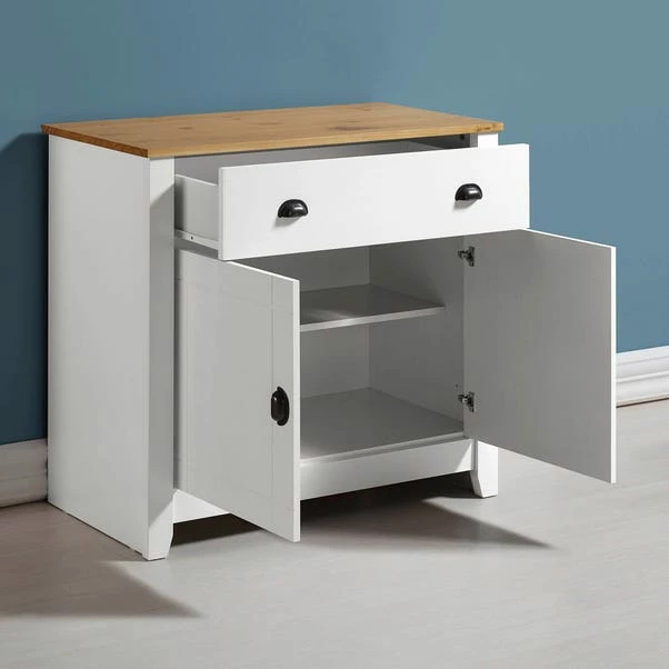 Offering considerable cabinet space, the Ludlow Sideboard, complete with an oak-varnished solid pine top, makes a beautiful addition to the home. The Sideboard features a spacious upper drawer and a two door cupboard bellow.